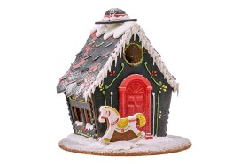 Domek z piernika, dekorowany orzechami, cynamomen oraz plastrami syszonej pomarańczą. Piernik wykonany jest z naturalnych składników, które gwarantują absolutnie niezapomniany smak i cudowny aromat. Jest w całości jadalny, więc możemy go bezpiecznie pałaszować aż do ostatniego okruszka. Co więcej, piernikowy domek może posłużyć nie tylko do jedzenia, może być także fantastyczną ozdobą na świąteczny stół. To także niezawodny pomysł na prezent, który z pewnością wywoła radość u każdej obdarowanej nim osoby.